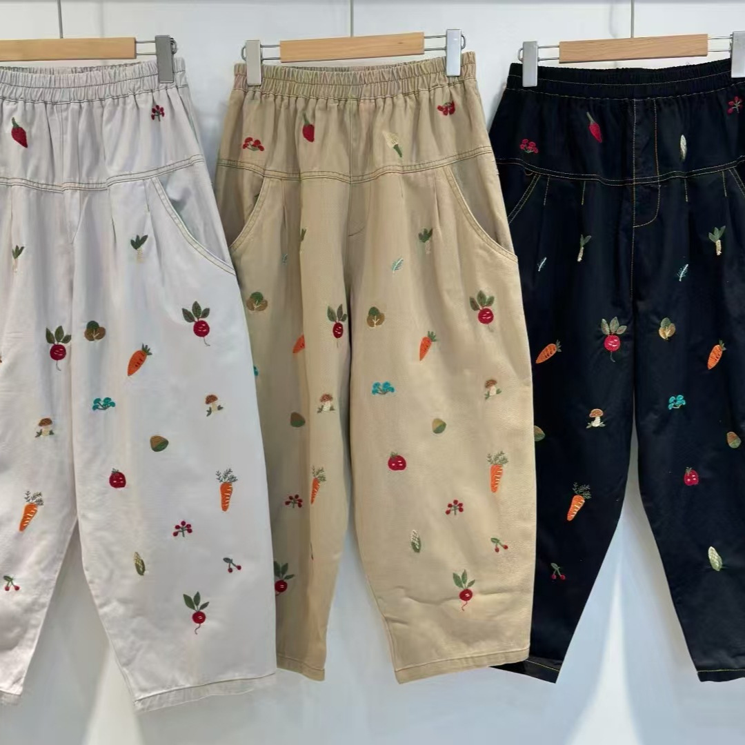 2025秋季新款女下装哈伦裤日系九分裤宽松女裤刺绣文艺风ins外贸