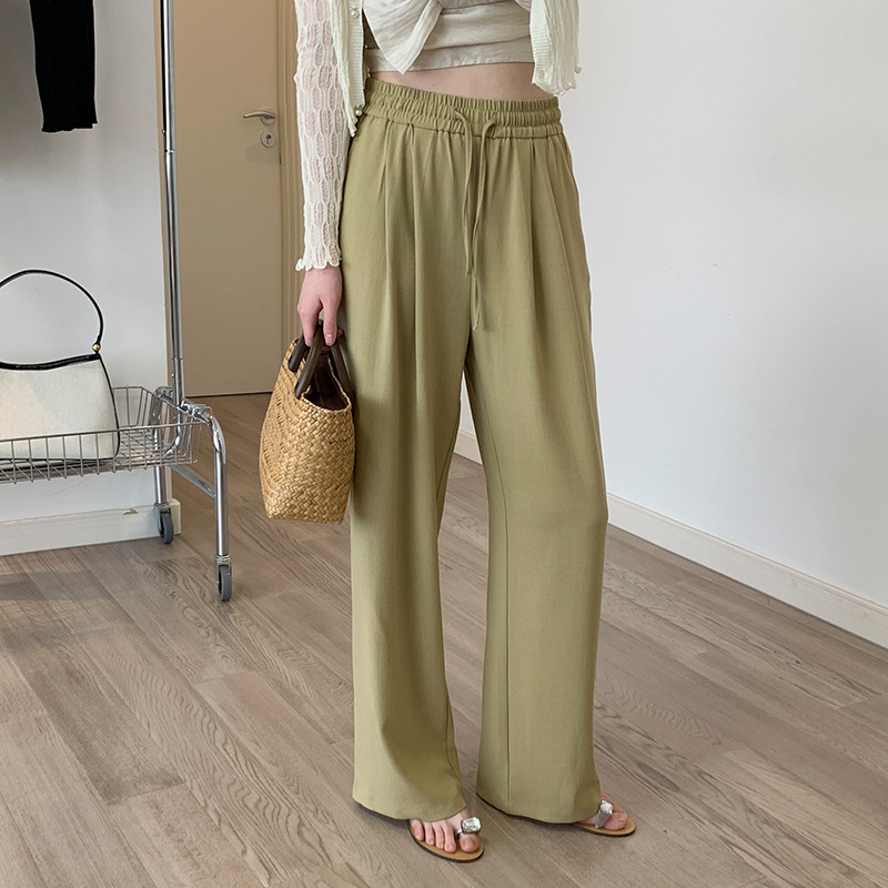 Celana kaki lebar kasual wanita, celana pel longgar ramping gaya Korea pinggang tinggi elastis musim semi dan panas