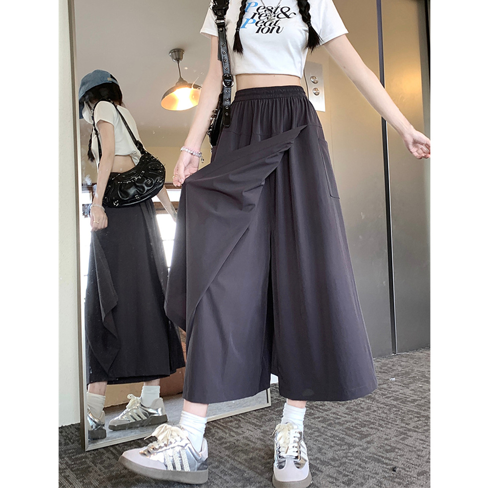 Yamamoto Celana Kulot Pakaian Kerja Wanita Rok Setengah Badan Huruf A Kasual Pinggang Tinggi Model Baru Musim Panas Celana Kaki Lebar Longgar Celana 7/8 Model Tipis
