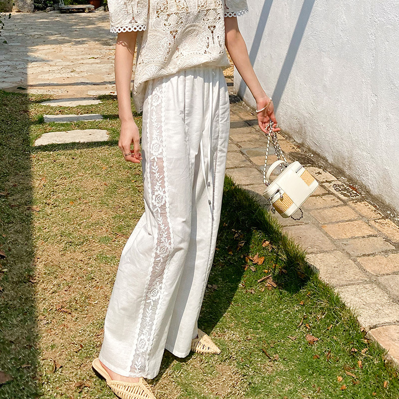 Celana Panjang Katun Linen Warna Putih Wanita Kasual Liburan Celana Panjang Desain Prancis Celana Panjang Wanita Model Tipis Longgar Celana Bernapas Musim Panas