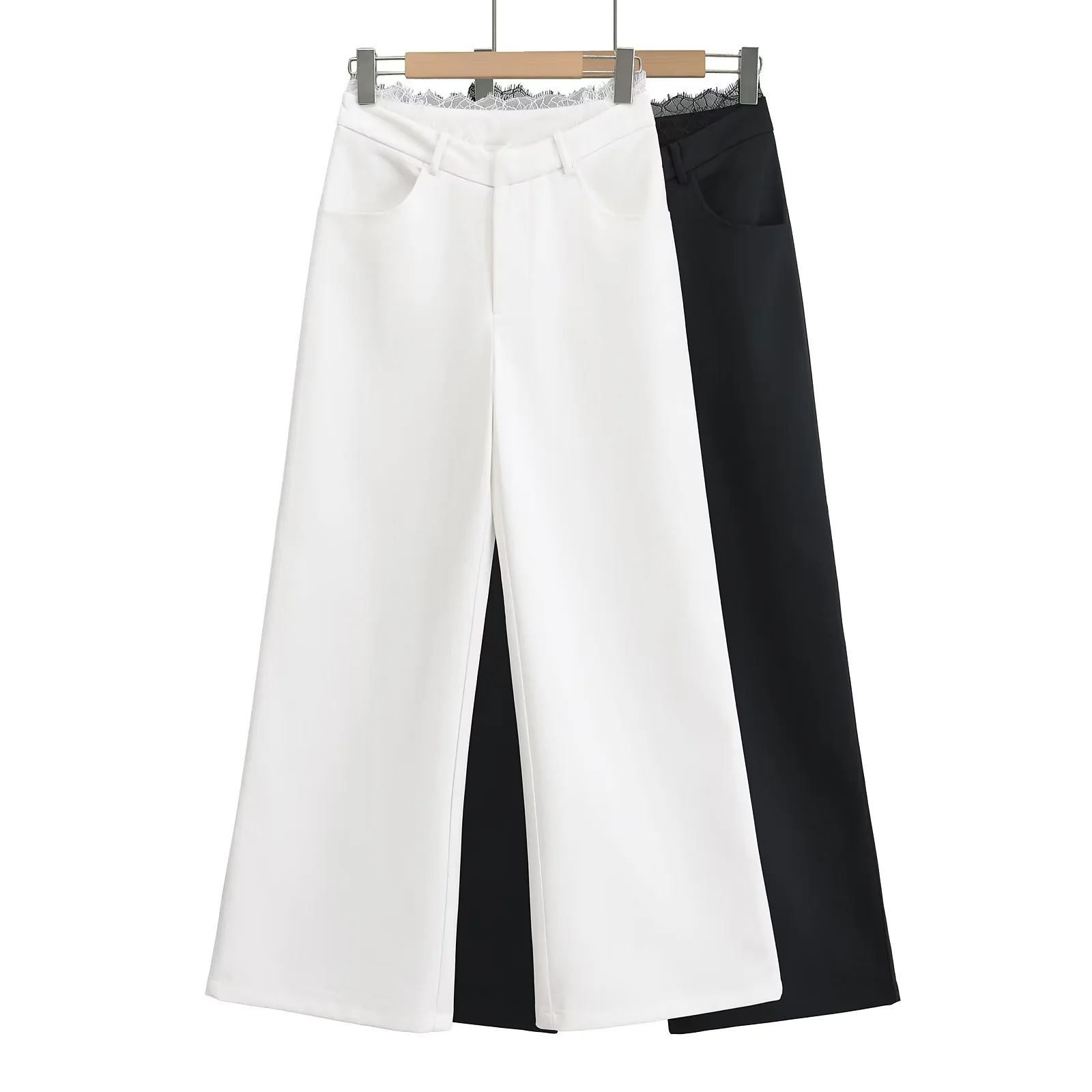 Celana Kaki Lebar Pinggang Tinggi Liontin Pinggang Tinggi Renda Dingin Gaya Malas Musim Panas Model Baru 2024 Celana Jas Kasual Mudah Dipadu Padan Longgar Wanita