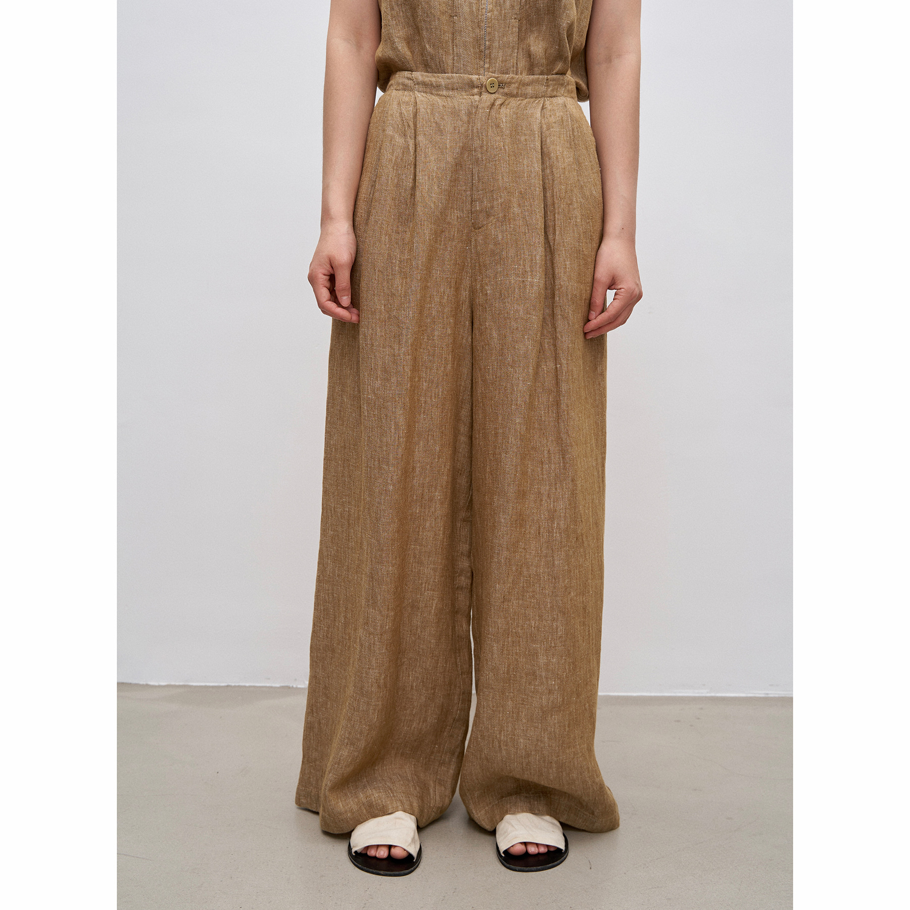 NEIHE Celana Kaki Lebar Longgar Kasual Pinggang Elastis Linen Penuh Celana Panjang Terlihat Kurus Wanita Musim Panas 252292