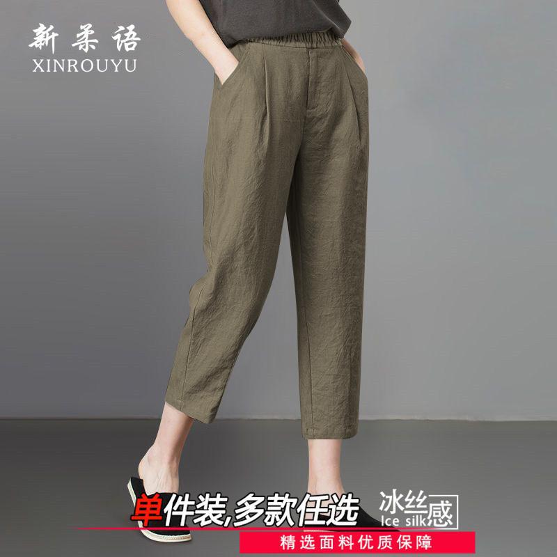 Celana Harem Terlihat Langsing Longgar Pinggang Tinggi Model Tipis Model Baru Musim Panas Sutra Es Celana Kasual Mudah Dipadu Padan Celana 7/8 Pakaian Wanita Ukuran Besar