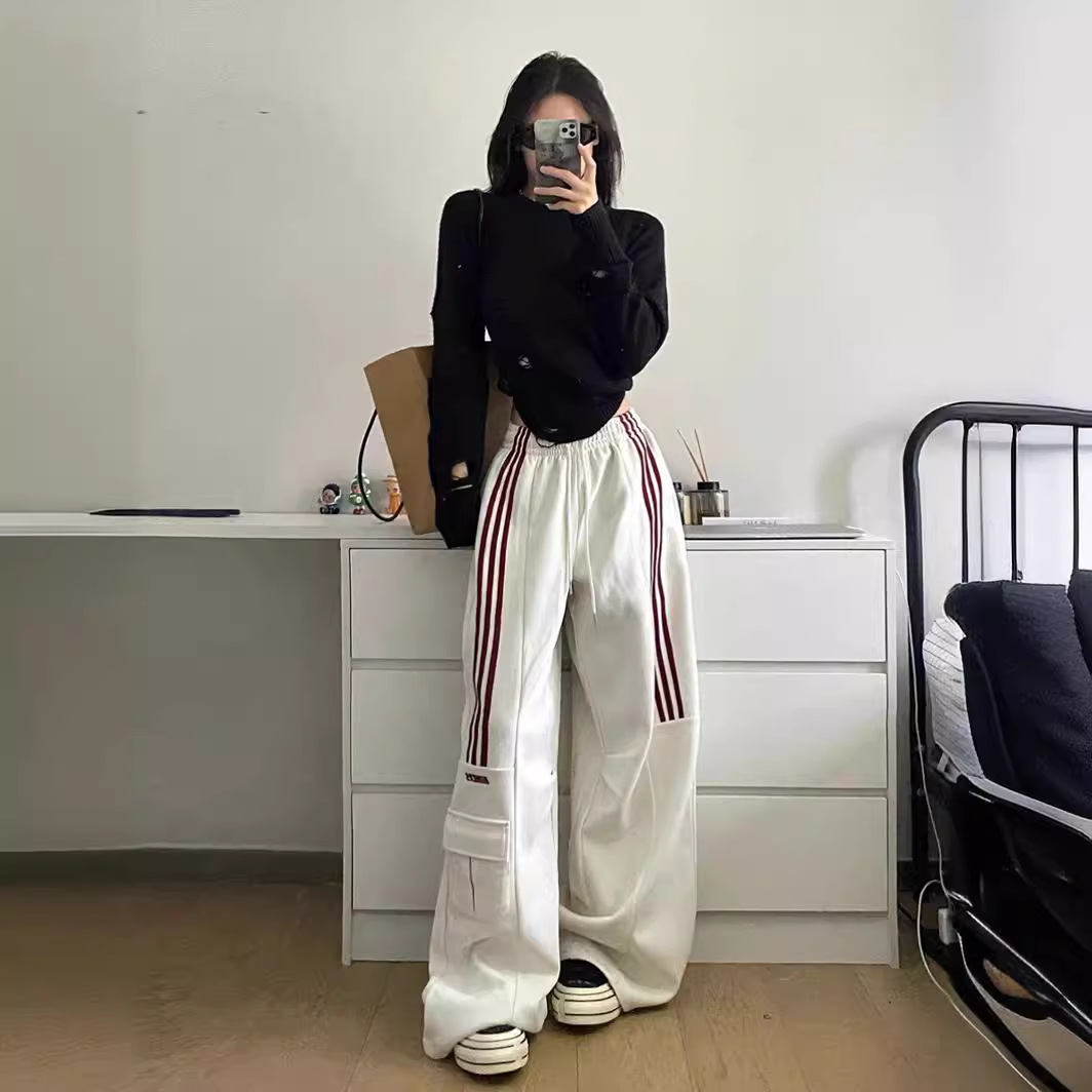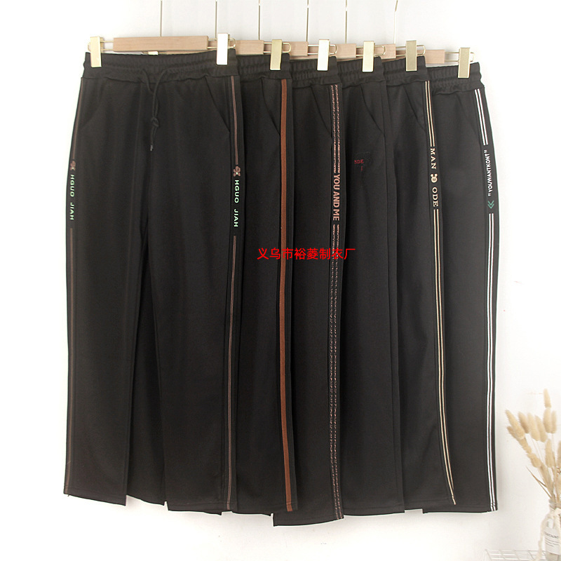 Celana Kasual Elastis Pinggang Tinggi Longgar Kasual Ukuran Besar Model Baru Wanita Setengah Baya Olahraga Katun Tens Sisi Samping Model Musim Semi