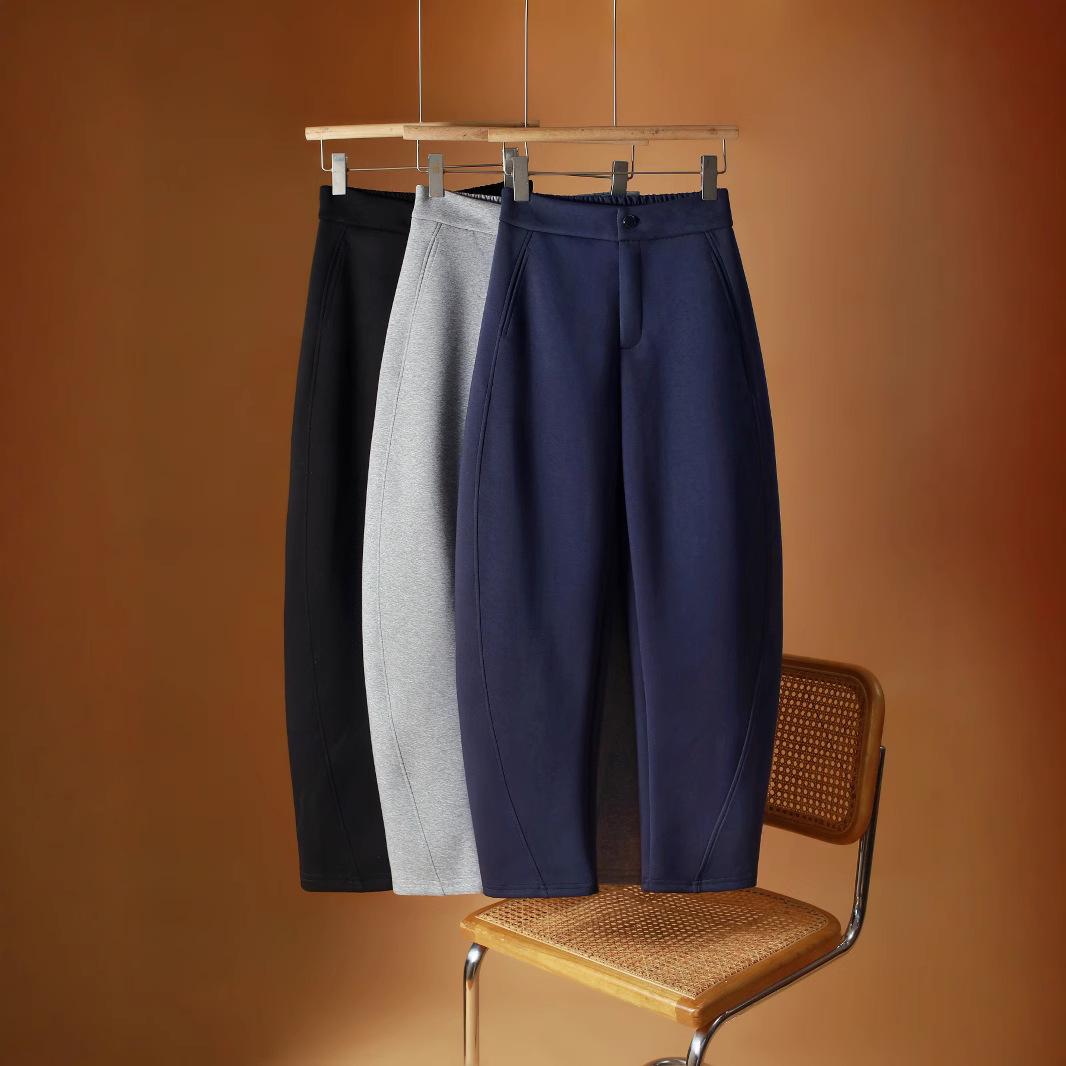 Celana panjang olahraga wanita, perdagangan luar negeri ukuran besar katun komposit olahraga musim semi dan musim gugur tebal kasual pinggang tinggi celana pel lurus