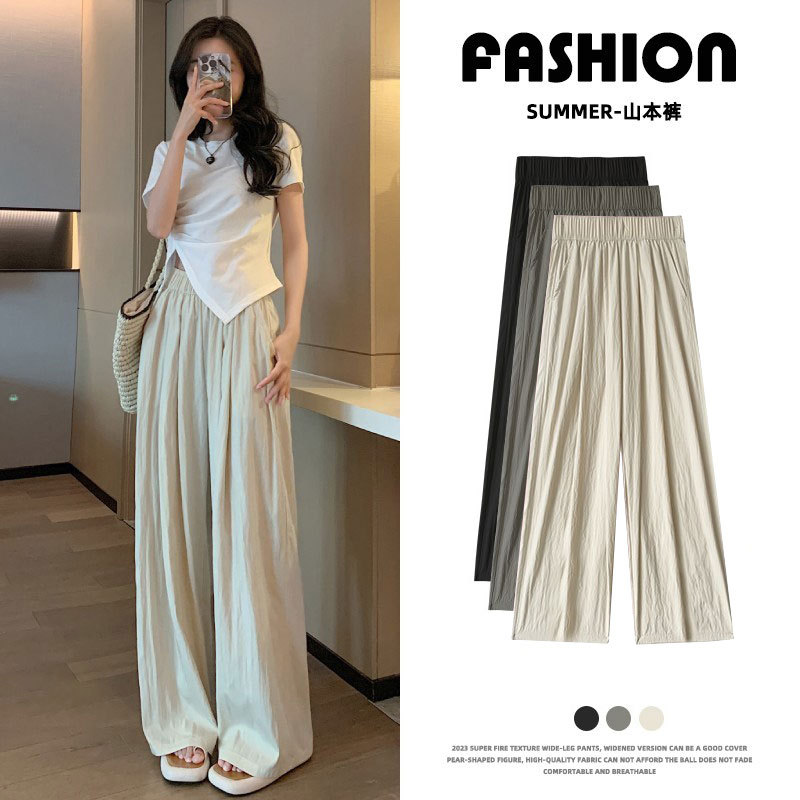 Rok Celana Kasual Kaki Lebar Celana Panjang Yamamoto Santai Terpasang Pinggang Tinggi Terlihat Ramping Longgar Ukuran Besar Gaya Korea Model Tipis Musim Panas Wanita