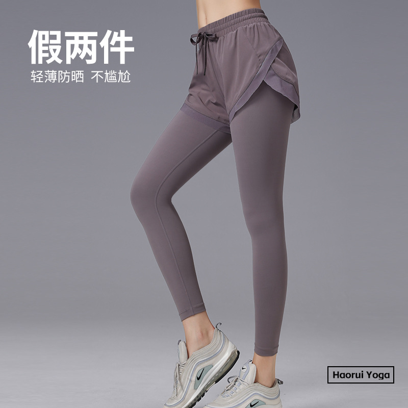 Celana olahraga dua-dalam-satu untuk bersepeda di luar ruangan untuk wanita, celana yoga berpinggang tinggi, pengangkat pinggul, tanpa jahitan, terasa seperti tanpa celana, untuk lari dan kebugaran, grosir.