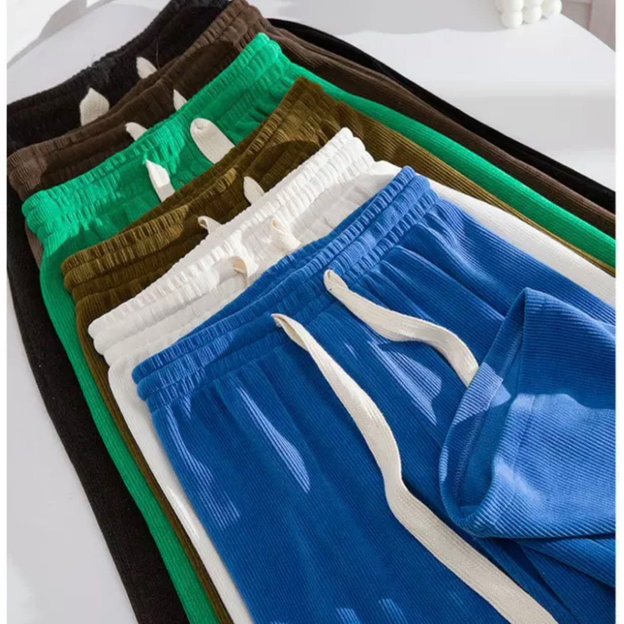Celana Lebar Kaki Elastis Rajutan Warna Polos Elegan Model Baru 2024 Celana Panjang Wanita Mudah Dipadu Padan Modis Celana Lurus Pakaian Wanita