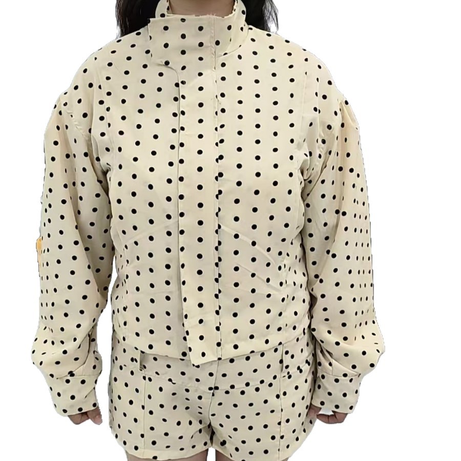 Setelan Dot Aprikot Hitam Putih Model Langsung Lintas Batas Pakaian Pendek Jaket Ukuran Besar Gaya Eropa Wanita Kasual Eropa Amerika