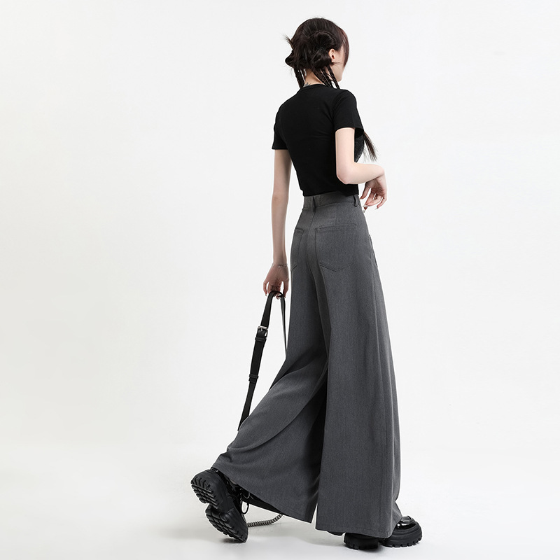 Celana Panjang Musim Gugur 2025 dengan Bahan Berkualitas Tinggi, Celana Kasual Wanita Ukuran Besar Warna Abu-abu Mewah, Celana Rok Kaki Lebar Berpinggang Tinggi