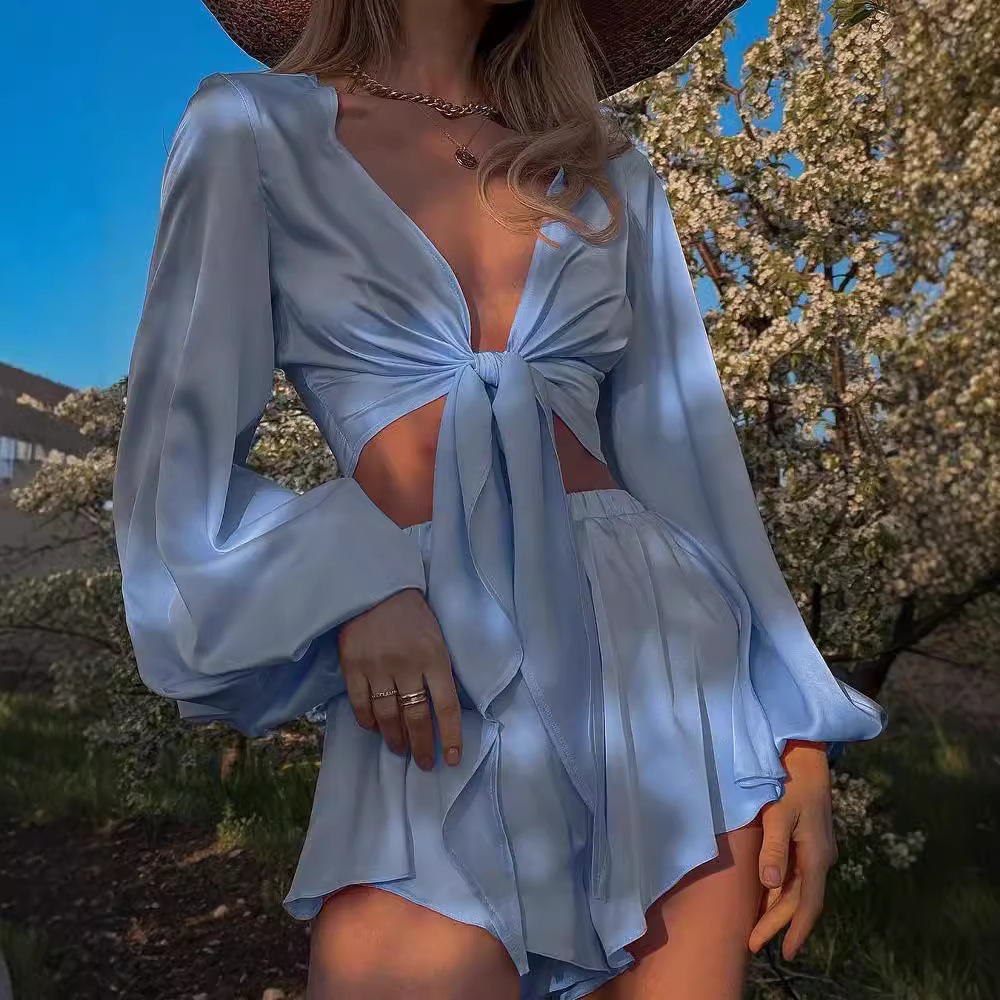 Amazon cross-border Atasan Wanita lengan panjang Perancis seksi renda lintas batas baru 2023 Eropa dan Amerika