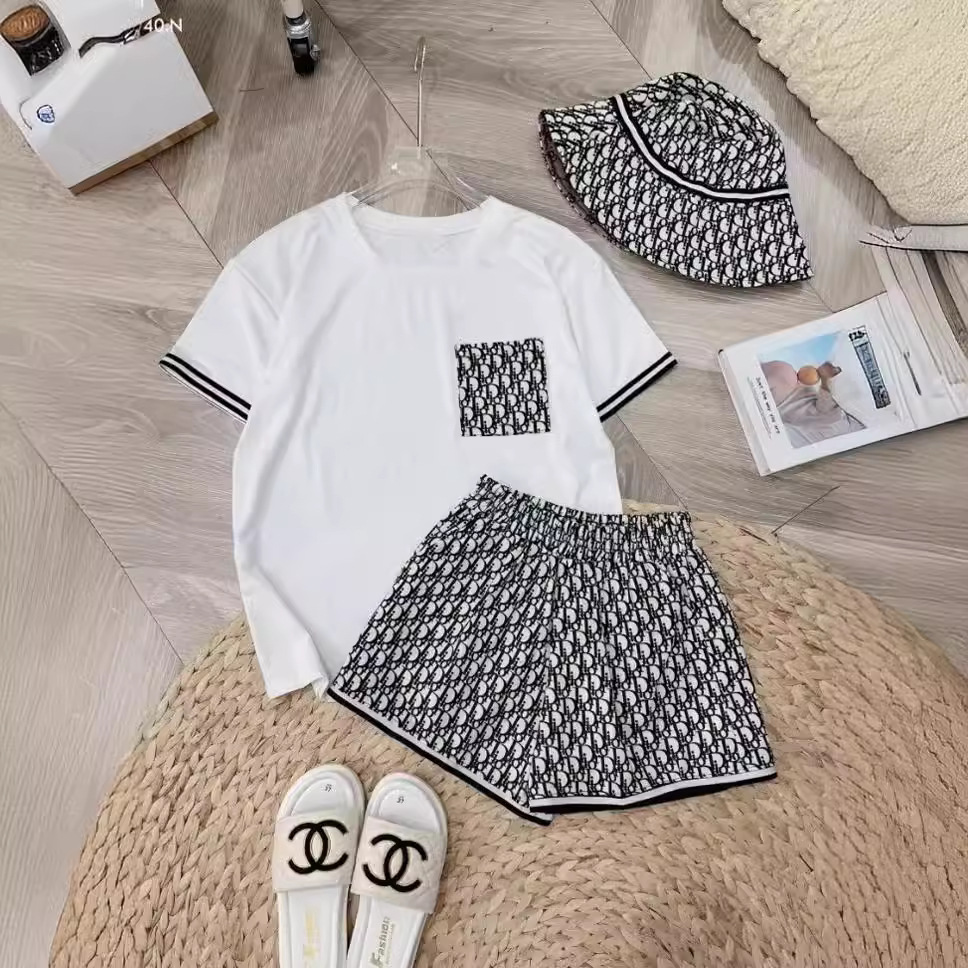 Setelan Celana Pendek Lengan Pendek Modis Kasual Musim Panas Lintas Batas Wanita Setelan Dua Potong Longgar Pakaian Olahraga Nyaman Terlihat Putih Pakai Luar