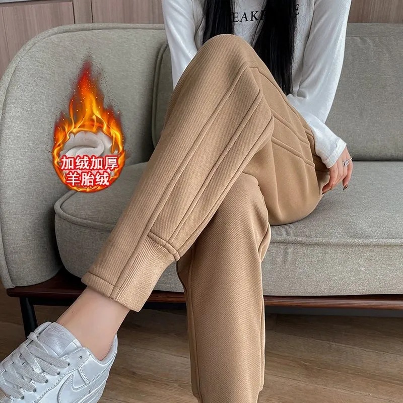 Celana Sepatu Bot Martin Ditambah Beludru Celana Harem Kasual Hangat Pinggang Tinggi Terlihat Langsing Longgar Berbentuk Buah Pir Ukuran Besar Model Baru Musim Gugur Musim Dingin Wanita