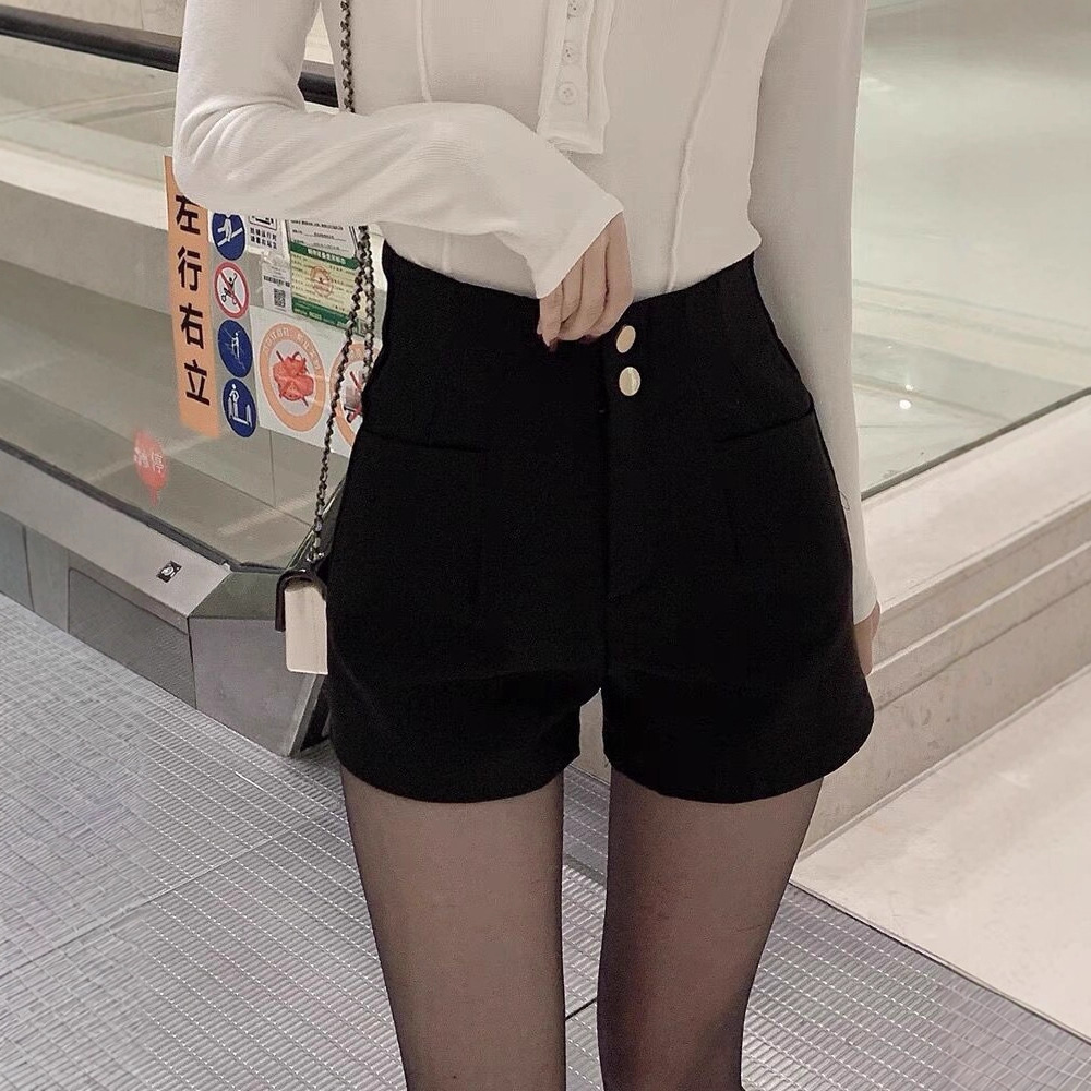 Celana Pendek Populer Selebriti Internet Ukuran Besar Pakaian Wanita Celana Kasual Warna Hitam Kaki Lebar Terlihat Ramping Pinggang Tinggi Tubuh Kecil Musim Gugur Model Baru Trendi
