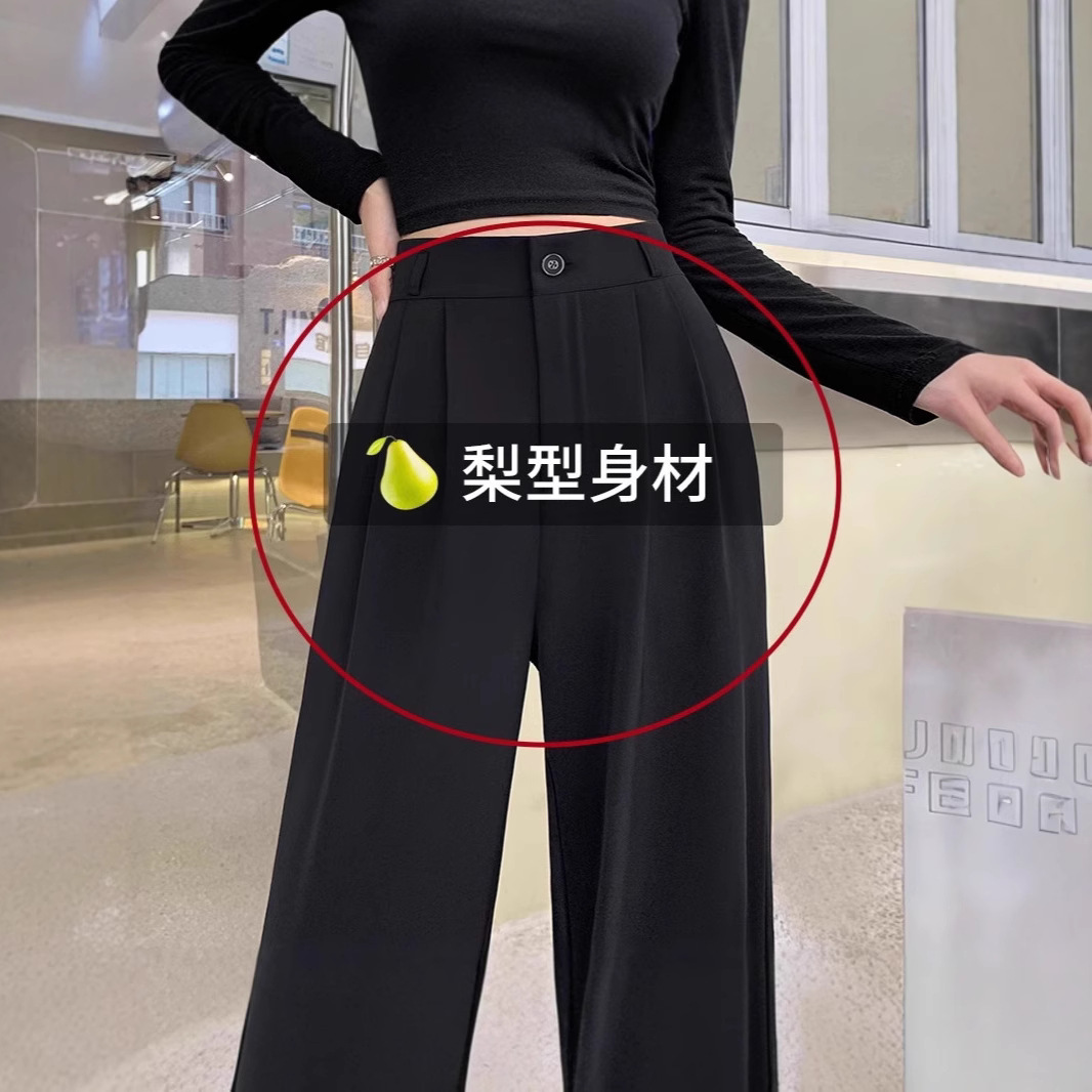 Celana setelan hitam untuk wanita, gaya musim semi dan musim gugur, ukuran besar, celana pelangsing untuk tubuh berbentuk pir, berlapis bulu, tebal, celana lebar yang menjuntai.