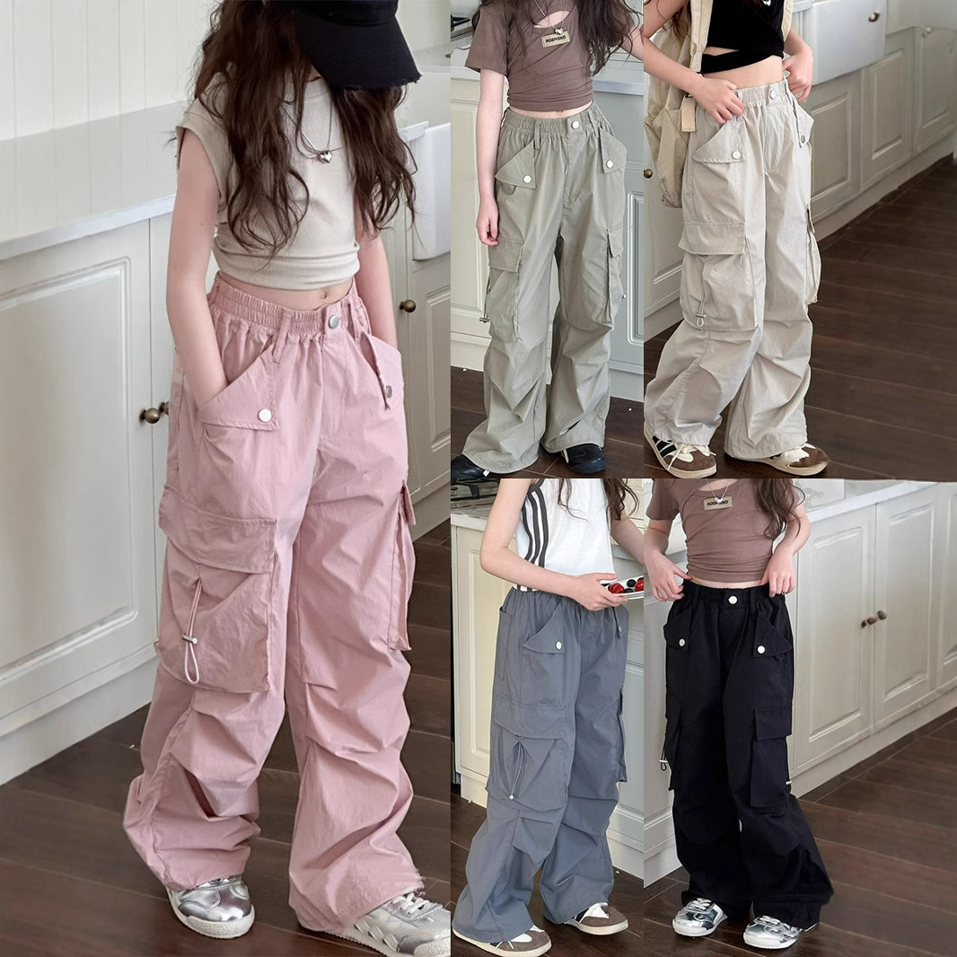Celana Kerja Gaya Barat Anak Perempuan Celana Kasual Anak-anak Musim Semi dan Musim Panas Celana Lurus Longgar Anak Sedang Besar Model Baru 2025 Celana Anak Laki-Laki