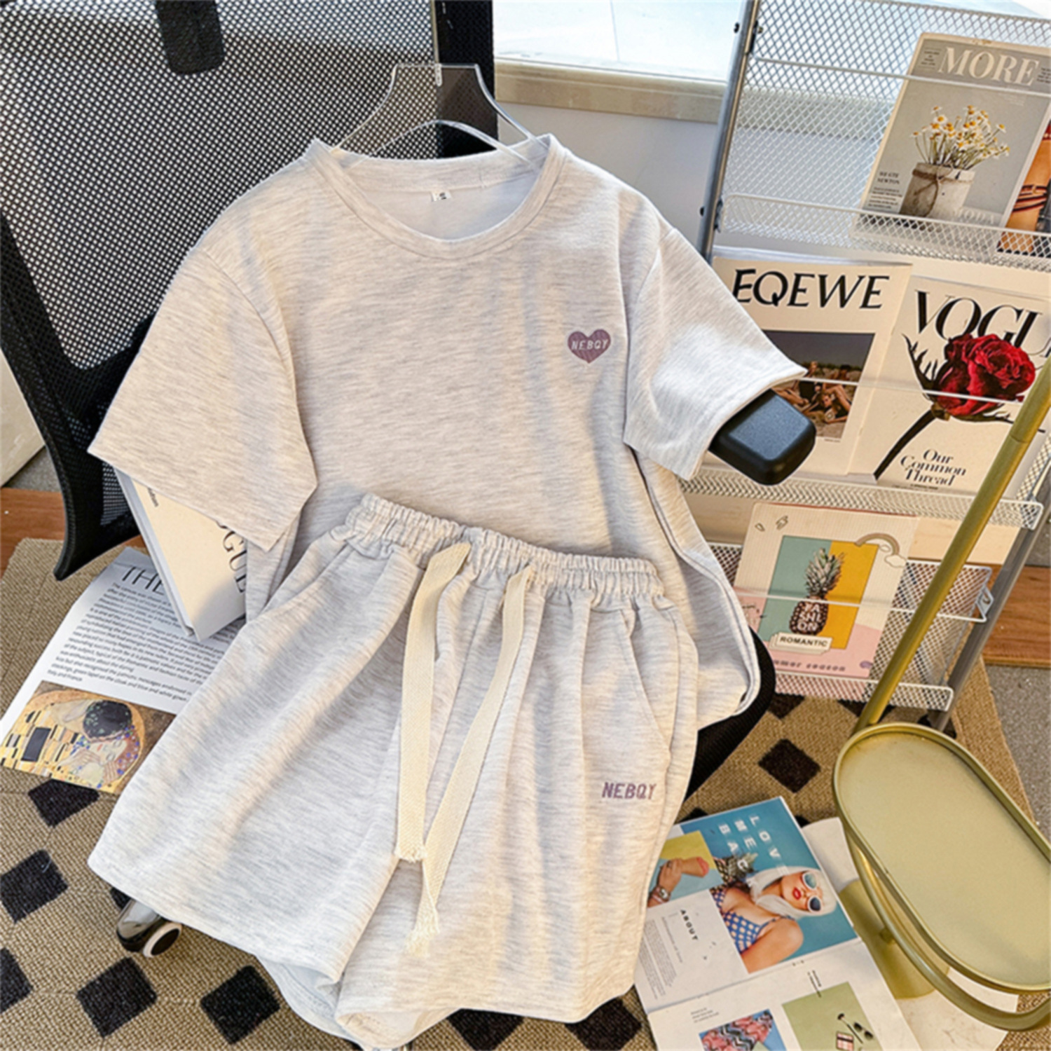 Setelan Celana Pendek Lengan Pendek Modis Kasual Musim Panas Lintas Batas Set Dua Potong Longgar Pakaian Olahraga Nyaman Terlihat Langsing Pakai Luar