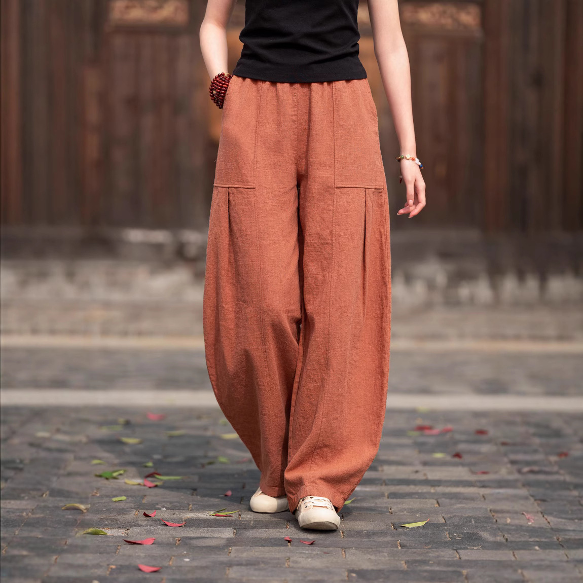 Amazon Musim Semi dan Musim Panas Model Baru Musim Semi 2025 Celana Panjang Seni Kasual Terlihat Langsing Longgar Katun Linen Artistik Wanita Celana Lentera