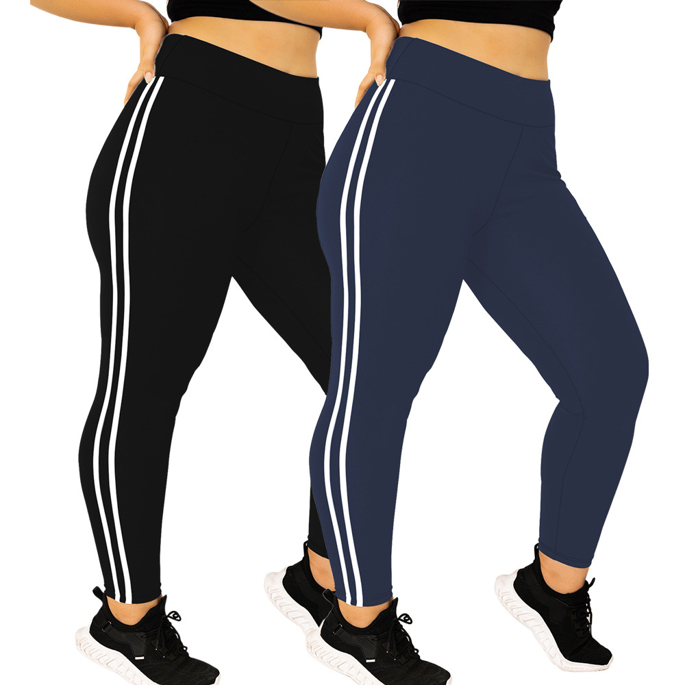 Amazon Eropa Amerika Celana Olahraga Kasual Wanita Pinggang Tinggi Sisi Ukuran Besar Sutra Susu Dua Bar Celana Sembilan Persepuluh Khusus Lintas Batas