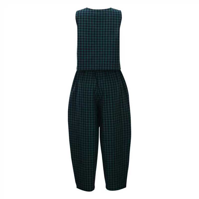 Pakaian Wanita Eropa dan Amerika Crossborder 2025 Amazon TK Model Baru Bercorak Kotak-Kotak Longgar Kasual Tanpa Lengan Celana Panjang Rompi Set
