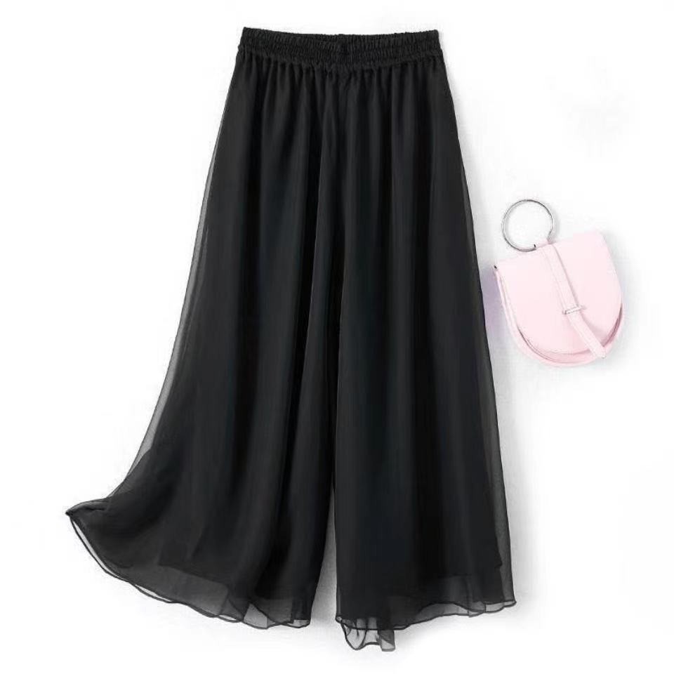 Celana kaki lebar pinggang tinggi celana pendek crop kasual longgar wanita celana latihan tari celana pantai pelangsing ukuran besar