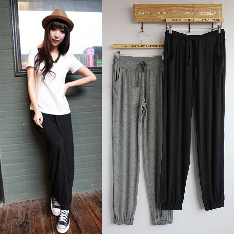 Celana olahraga wanita, celana Modal tipis longgar ukuran plus, celana latihan kebugaran, celana tari, tali pergelangan kaki, Bloomer sutra es
