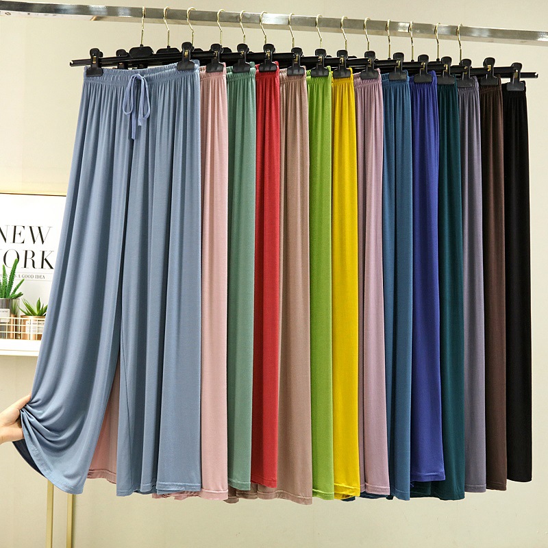 Celana kaki lebar Modal celana wanita pinggang tinggi terbungkus musim semi dan musim panas celana tipis celana kasual ramping celana lurus ukuran besar