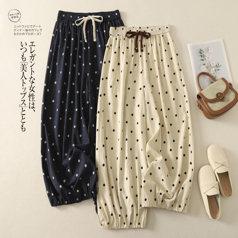 Celana Kasual Linen Polinot Model Baru Foto Padat Model Baru Wanita Berukuran Besar Berpinggang Tinggi Terlihat Kurus Kaki Lebar Sembilan Poin