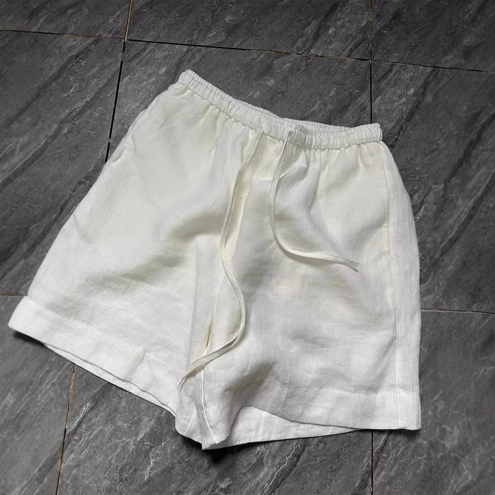 Celana Pendek Warna Putih Ukuran Besar Celana Kaki Lebar Kasual Huruf Pinggang Elastis Terlihat Ramping Longgar Tubuh Kecil Model Baru Musim Panas 2025 Wanita