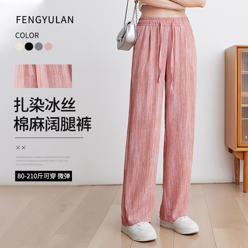 Pabrik grosir es sutra celana kaki lebar wanita tinggi pinggang menggantung musim semi dan musim gugur olahraga ukuran besar gemuk gadis lurus celana pel musim panas