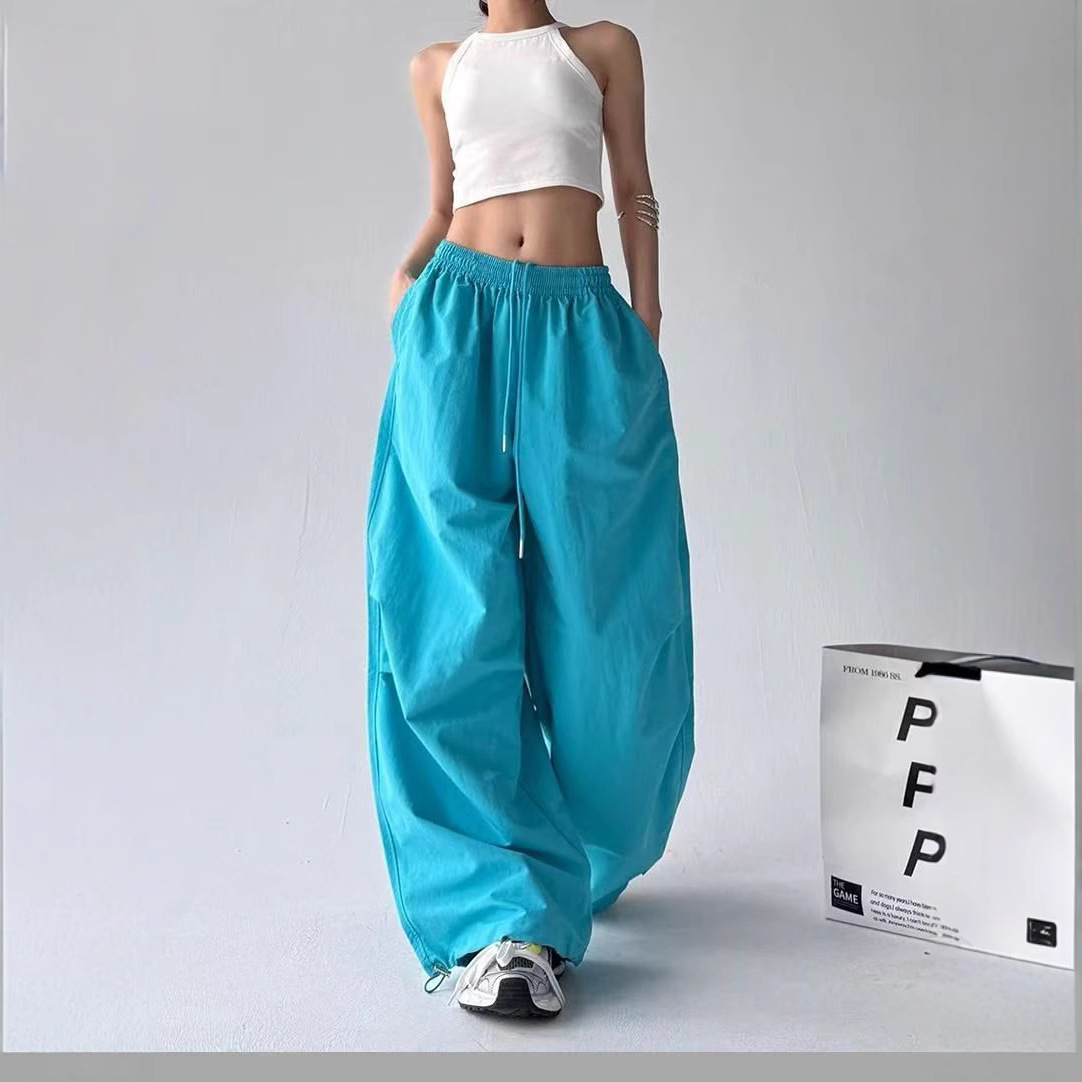 Celana Parasut Gaya Amerika Cepat Kering Model Tipis Musim Panas Celana Karung Wanita Kaki Lebar Ukuran Besar Model Baru 2025 Grosir
