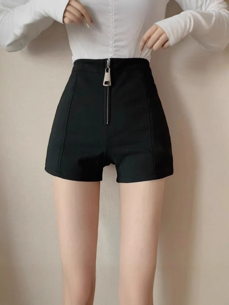 Celana Pendek Wanita Gemuk Ukuran Besar Musim Panas 2025 Celana Kaki Lebar A-Huruf Terlihat Langsing Longgar Ritsleting Pinggang Tinggi Celana Panas Kasual Warna Hitam
