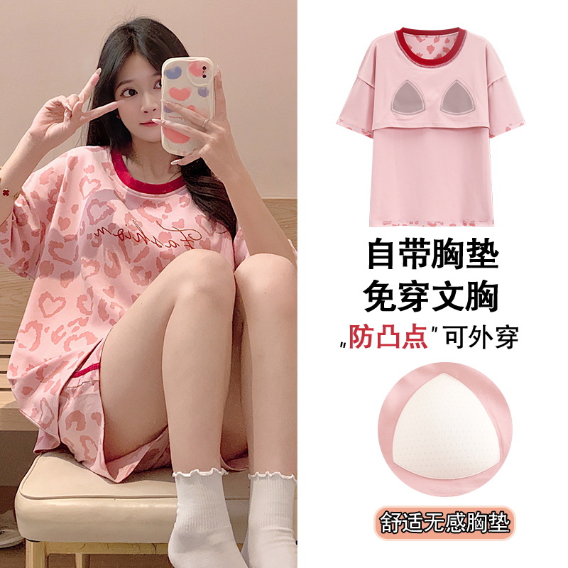 Piyama untuk Wanita Musim Panas Katun Modal Lengan Pendek Celana Potong Set Keren Ukuran Besar Musim Panas dengan Bantalan Dada Dapat Dipakai Di Luar Pakaian Rumah