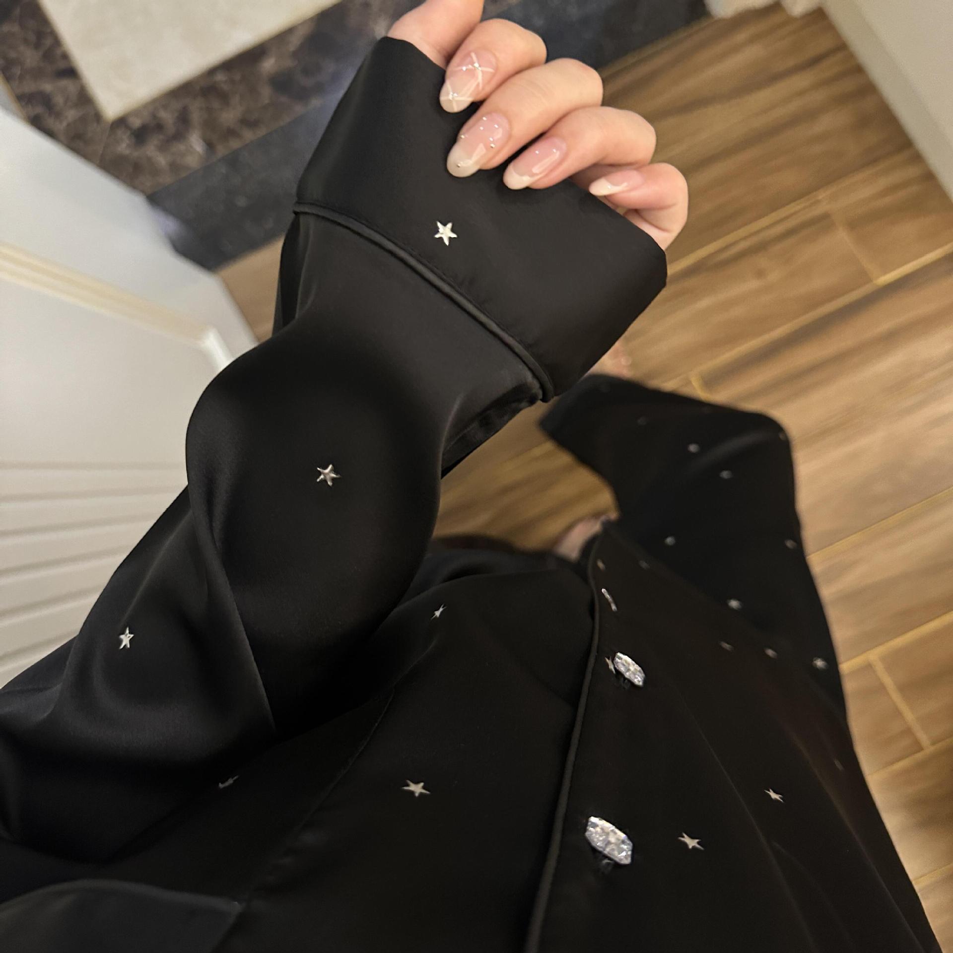高级感星星黑色冰丝睡衣女2025年新款缎面长袖长裤大码家居服套装