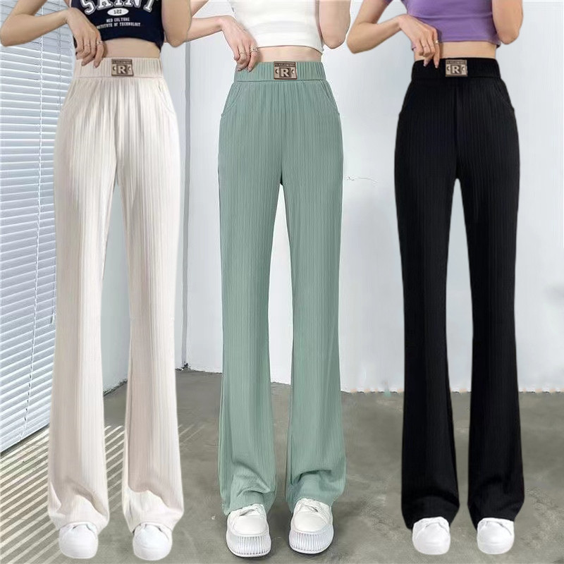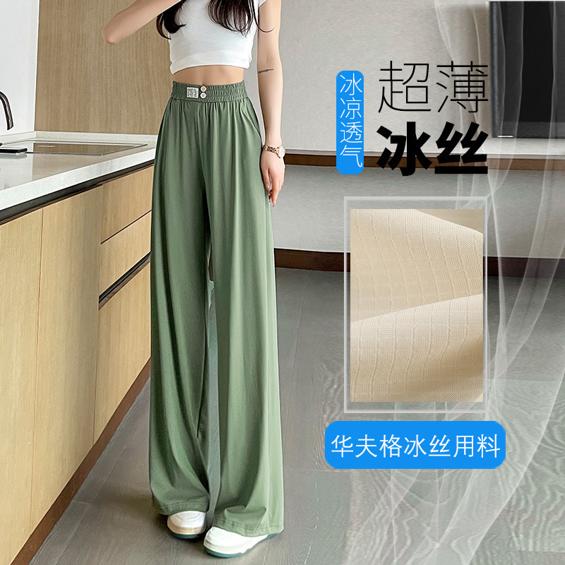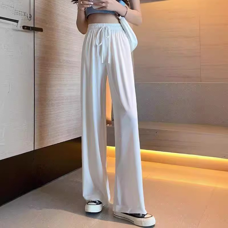 Celana Kaki Lebar Versi Sempit Sutra Es Ukuran Besar Tanpa Rasa Celana Kasual Musim Panas Celana Lurus Longgar Model Tipis