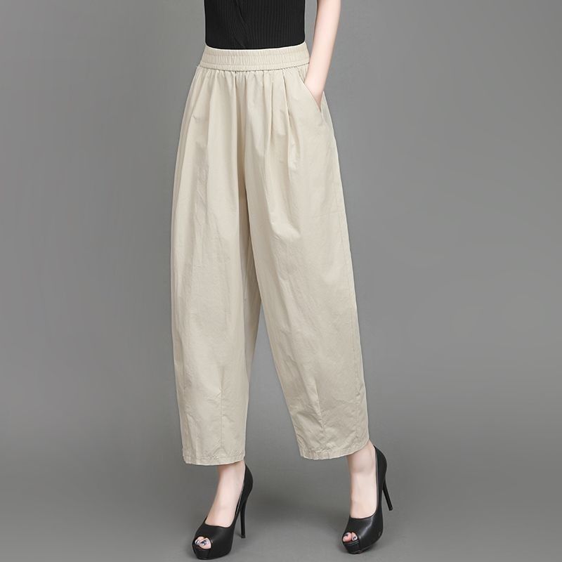 Celana Sembilan Persepuluh Longgar Pinggang Tinggi Model Tipis Katun Perdagangan Luar Negeri Ukuran Besar Celana Kerja Wanita Model Baru Musim Panas Lentera Kasual Terlihat Kurus