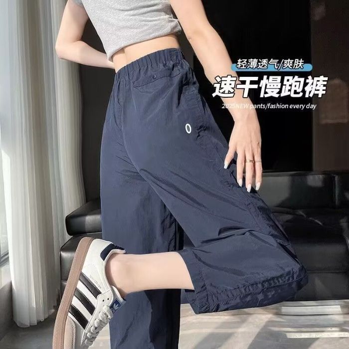 Celana Olahraga Cepat Kering Celana Kasual Longgar Terlihat Langsing Pinggang Tinggi Ukuran Besar Wanita Gemuk Musim Panas Celana Lobak Harem Model Tipis