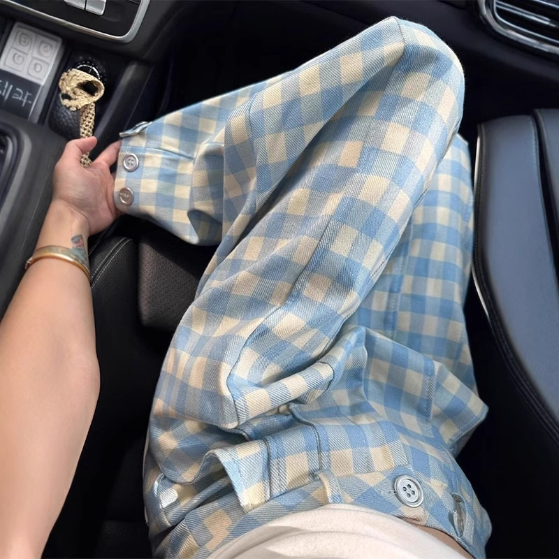 Celana Kasual Kotak-kotak Musim Panas 240Kg Ukuran Ekstra Besar Celana Kaki Lebar Longgar Rok Celana 9/10 Longgar Wanita