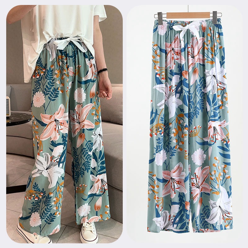 Celana piyama modal longgar wanita, celana kasual luar ruangan ukuran besar, celana rumah warna polos, celana anti-nyamuk tipis, celana AC musim panas