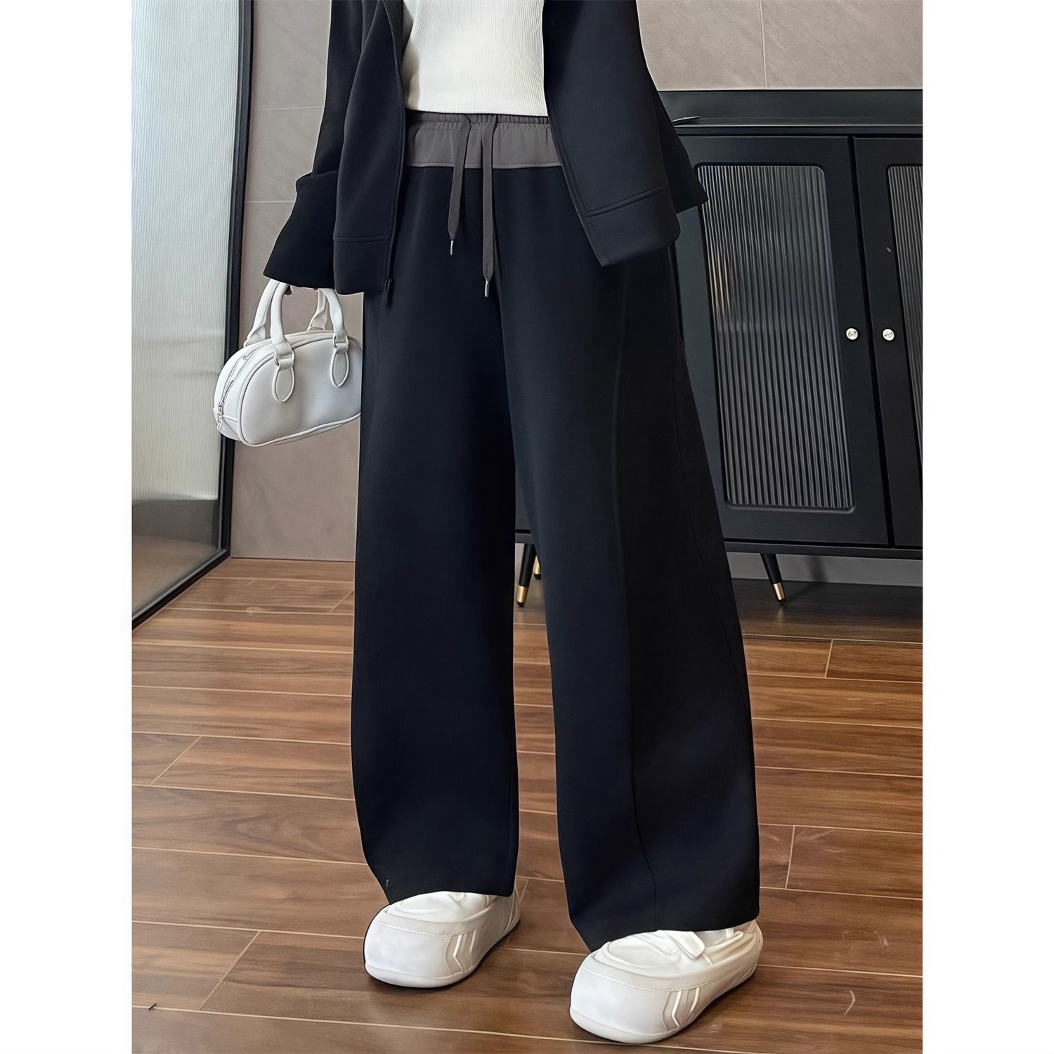 Celana handuk lembut ketan, celana kasual wanita musim gugur dan musim dingin ukuran plus pinggang tinggi lurus celana kaki lebar longgar