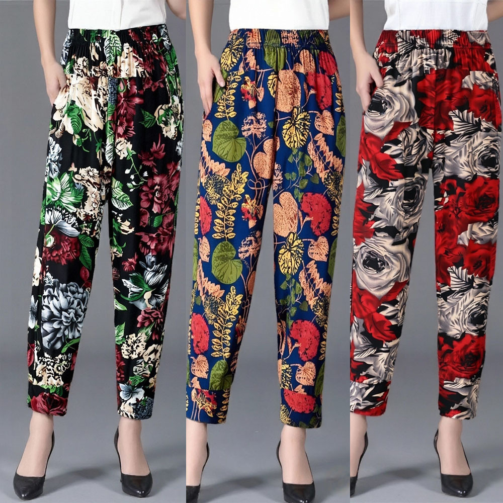 Celana Bloomer ibu wanita, Bawahan bunga setengah baya dan lansia tipis ukuran besar longgar sutra es dipotong susu nenek musim panas