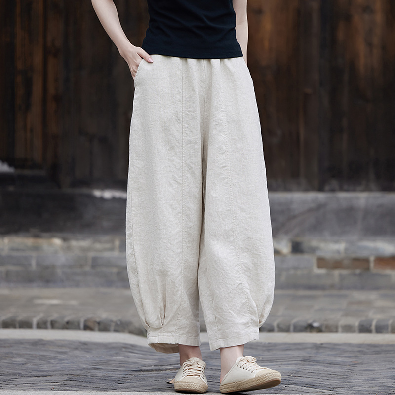 2024 pakaian wanita katun dan linen artistik desain retro, celana panjang kasual longgar linen besar tipis