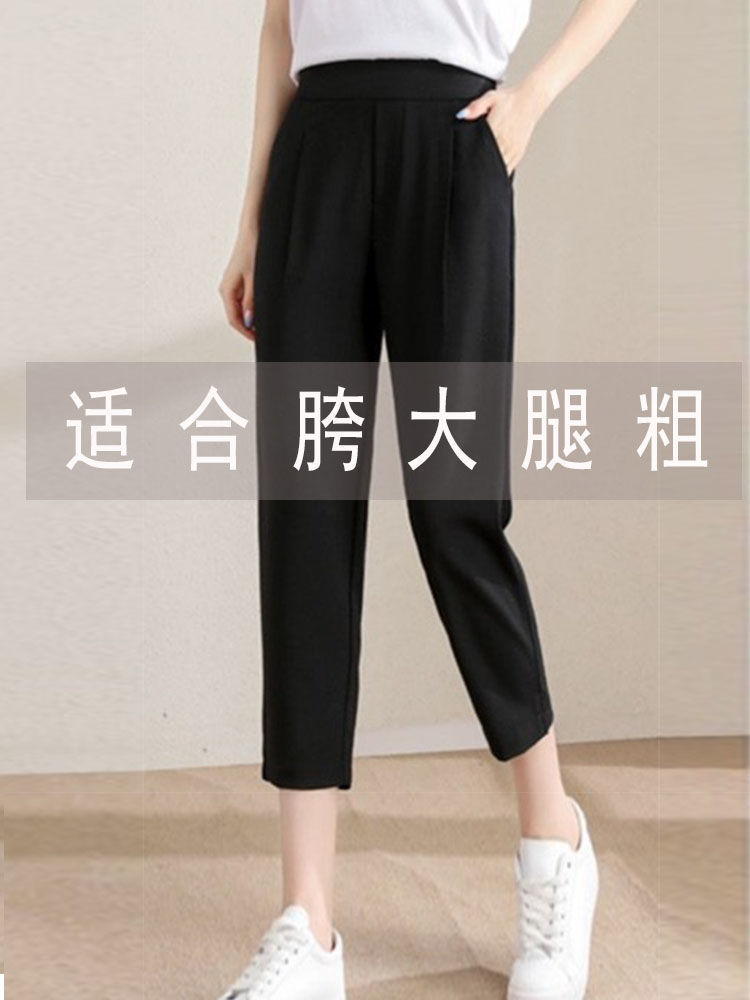 Celana crop ukuran plus untuk wanita, celana kasual tipis musim panas kecil, celana harem lurus potong untuk wanita