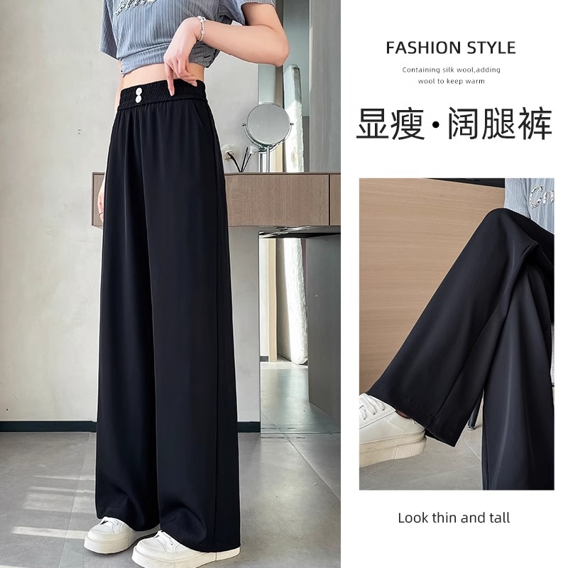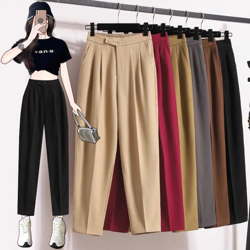 Celana Kasual Ukuran Besar Celana Lurus Terlihat Ramping Mudah Dipadu Padan Pinggang Tinggi Terjatuh Model Tipis Musim Panas Wanita Celana Panjang Pel Kaki Lebar Versi Sempit