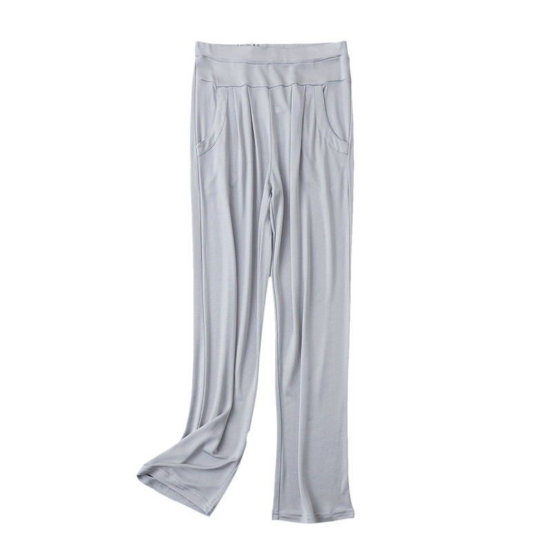 Celana panjang sutra murbei wanita, bawahan sutra nyaman elastis pinggang tidak ketat kasual longgar ukuran besar musim panas