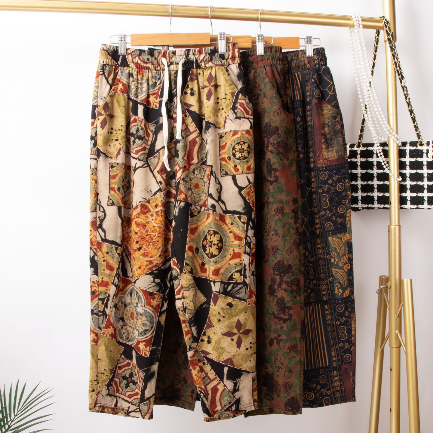 Celana Linen Katun Dicetak Celana Linen Ibu Kasual Wanita Bibi Longgar Pinggang Tinggi Model Baru 2025 Model Tipis Musim Panas Anak-anak