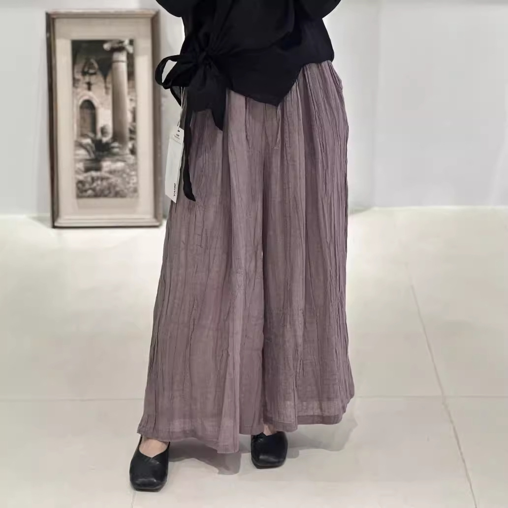 Celana panjang lebar berbahan linen Tencel lipit, model baru musim semi 2025, bertekstur, longgar, kasual untuk wanita, ukuran besar, panjang 1038