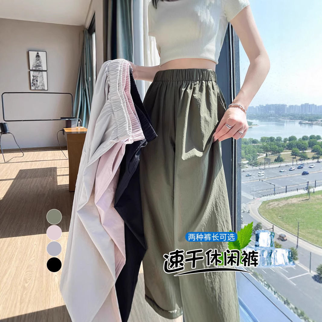 Celana Sembilan Persepuluh Sutra Es Wanita Musim Panas Model Tipis Model Baru 2025 Pinggang Tinggi Gaya Tergelung Longgar Ukuran Besar Celana Kaki Lebar Lurus