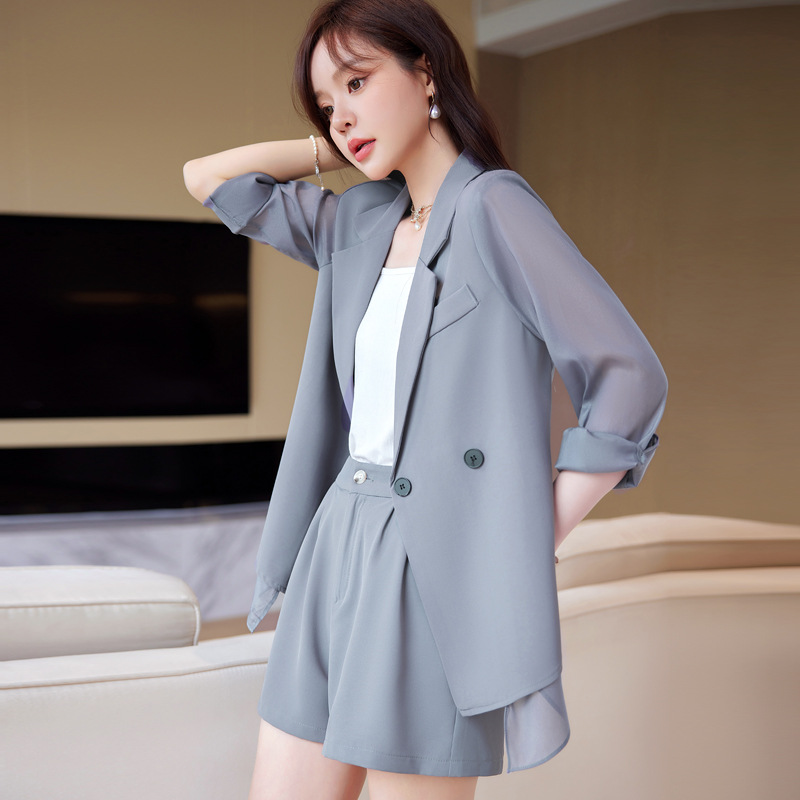 Setelan pakaian modis wanita, pakaian pelindung matahari celana pendek kasual longgar kecil 2024 tipis musim panas
