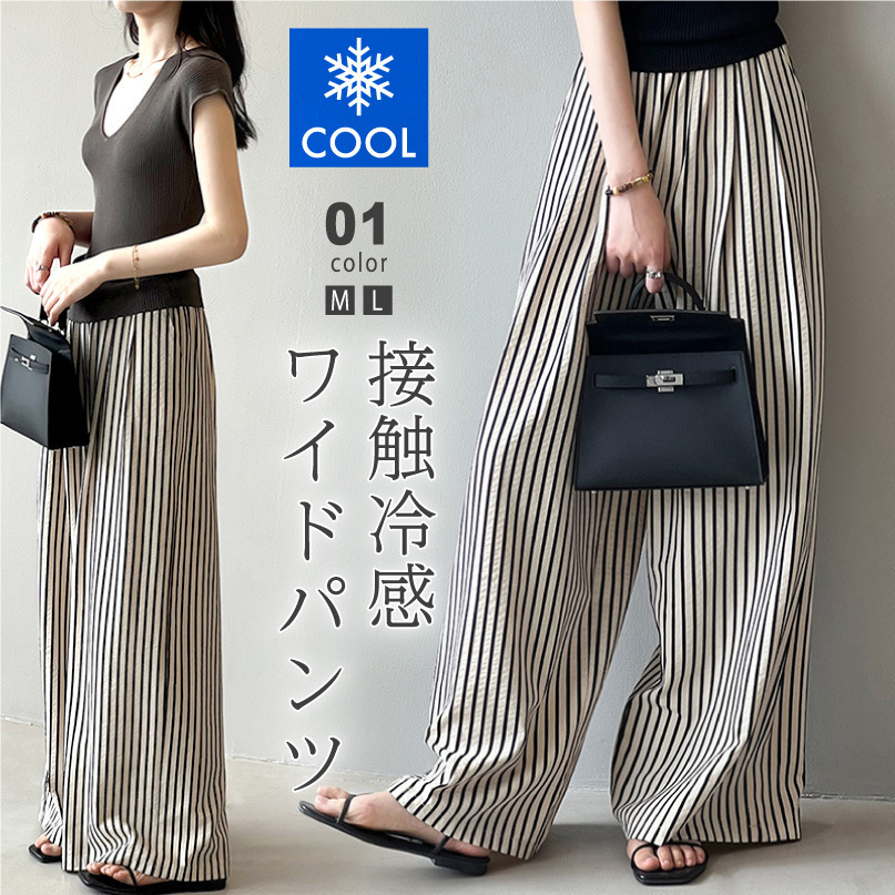 Lotte Pakaian Wanita Celana Strip Longgar Celana Lurus Longgar Ukuran Besar Longgar Pinggang Bawah Wanita Longgar Celana Kaki Lebar